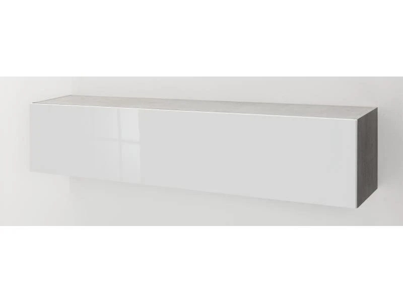 Élément mural à ouverture verticale avec structure laminée béton et façade blanche brillante. Ouverture push-pull