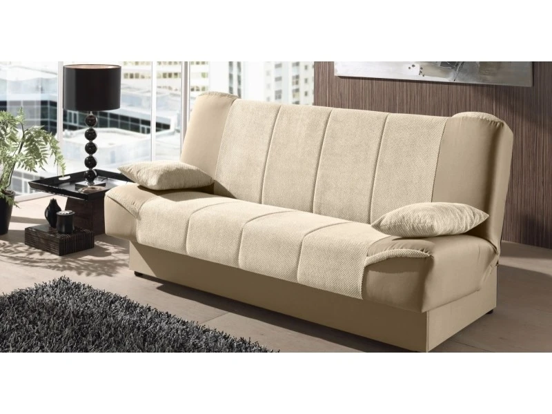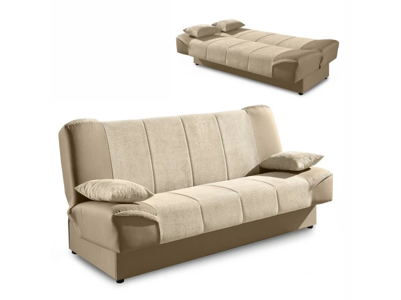 Fonctionnel et esthétique, notre canapé convertible ALTON sera parfait pour les petits appartements ou les chambres d’amis. Le clic clac ALTON s’adapte à tous les intérieurs grâce à son design contemporain. Son revêtement en tissu bi-matière et bicolore réchauffera votre intérieur. Le canapé convertible ALTON se transforme rapidement en lit confortable grâce à son système d’ouverture clic clac. Il possède un coffre de rangement spacieux vous permettant de ranger couettes et oreillers. Un canapé idéal pour recevoir vos amis ou votre famille et pour leur offrir un couchage confortable. Avec notre clic clac ALTON, vous disposerez d’un couchage d’appoint pouvant accueillir 2 personnes. Existe en 3 coloris : gris, beige et marron. Dimension du clic clac : L. 205 cm x l. 104 cm x H. 96.5 cm Dimension du couchage : 123 x 204 cm
