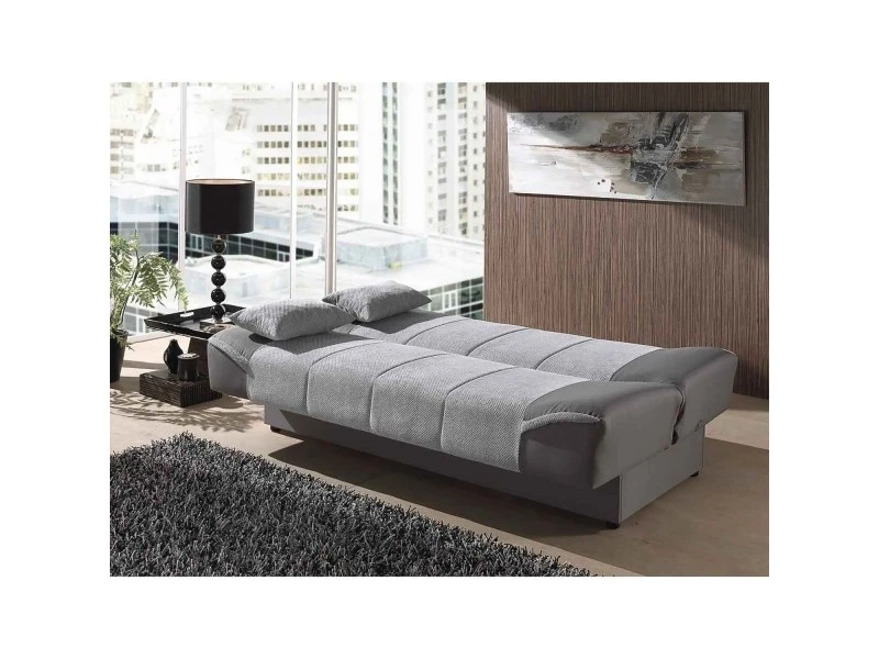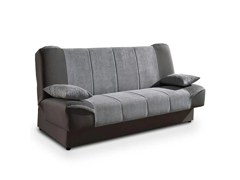 Fonctionnel et esthétique, notre canapé convertible ALTON sera parfait pour les petits appartements ou les chambres d’amis. Le clic clac ALTON s’adapte à tous les intérieurs grâce à son design contemporain. Son revêtement en tissu bi-matière et bicolore réchauffera votre intérieur. Le canapé convertible ALTON se transforme rapidement en lit confortable grâce à son système d’ouverture clic clac. Il possède un coffre de rangement spacieux vous permettant de ranger couettes et oreillers. Un canapé idéal pour recevoir vos amis ou votre famille et pour leur offrir un couchage confortable. Avec notre clic clac ALTON, vous disposerez d’un couchage d’appoint pouvant accueillir 2 personnes. Existe en 3 coloris : gris, beige et marron. Dimension du clic clac : L. 205 cm x l. 104 cm x H. 96.5 cm Dimension du couchage : 123 x 204 cm
