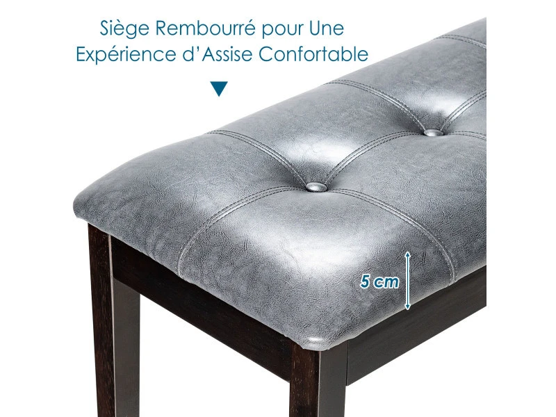 - 【Siège confortable pour deux personnes:】Garni d’une éponge épaisse à haute résilience, le siège est confortable pour une assise prolongée. Le banc est suffisamment large pour que deux personnes puissent s’asseoir ensemble. Les pieds sont munis de 4 coussinets pour éviter d’abîmer le sol.