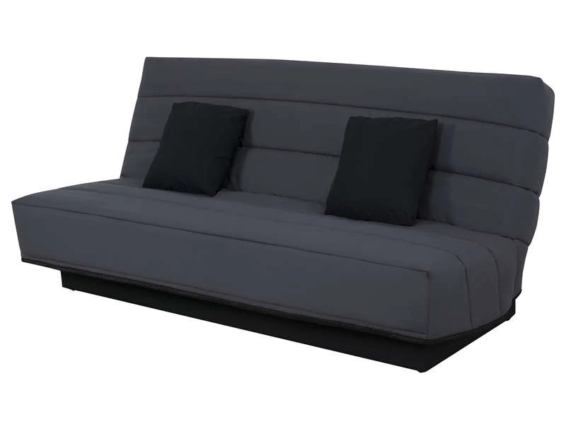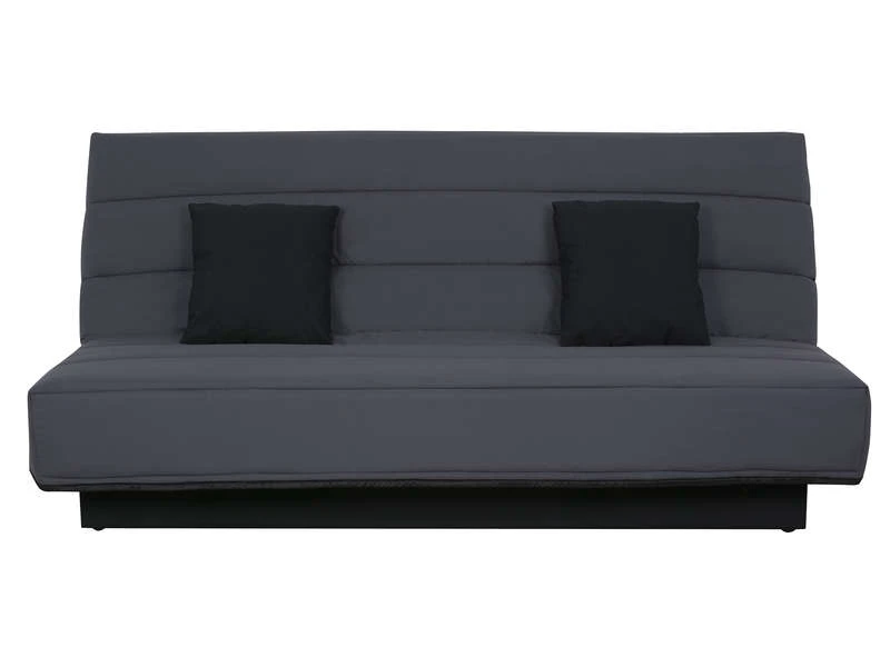 Alliez confort, design et fonctionnalité avec cette banquette clic-clac trois places en coton anthracite et noir. Idéale pour un studio, un salon ou un espace de détente, elle se déploie en un geste en un couchage ultra-confortable pour deux personnes. Grâce à son matelas mousse épais de 13cm, elle promet un repos aussi bénéfique que dans un vrai lit. Pratique, elle est dotée de deux coffres inférieurs pour y ranger vos couettes, oreillers et linge de lit. En bonus, ses deux coussins décoratifs sont fournis. Fabriquée en France.