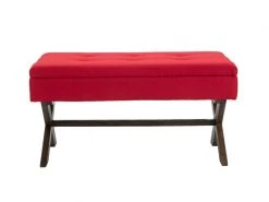 Banquette Namaro En Tissu Avec Espace De Rangement Pieds Bois De Caoutchouc , Rouge/antique
