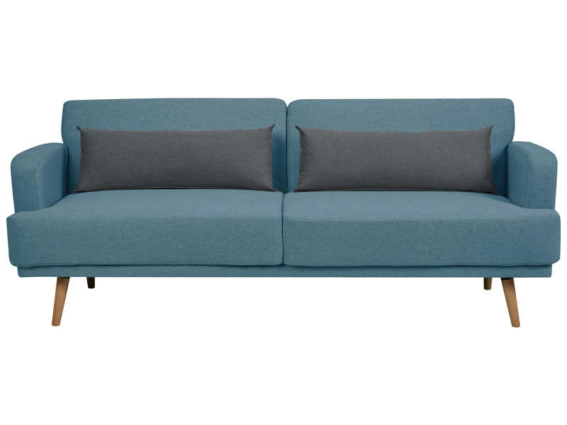 Alliez fonctionnalité et design avec cette banquette convertible en tissu bordeaux pour trois personnes. Généreusement garnie en mousse et dotée de deux coussins moelleux anthracite, elle propose une assise idéale. Pratique, elle se déploie facilement en un couchage d’appoint spacieux pour deux personnes. Sa structure et ses pieds angulaires en bois promettent une stabilité et une solidité durables.