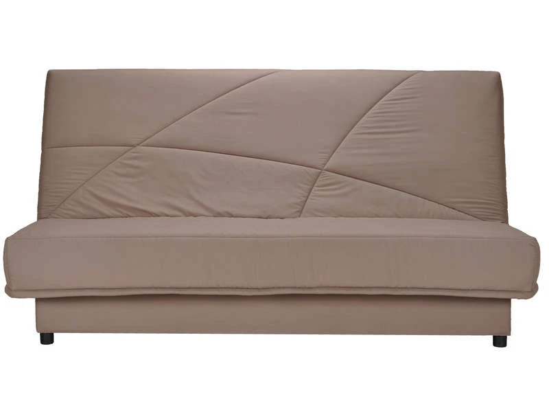 Design et fonctionnelle, cette banquette clic-clac trois places taupe va devenir la meilleure alliée des petites surfaces! Pensé pour vous simplifier la vie, son revêtement en tissu microfibres se déhousse en un geste pour un entretien facile et rapide. Offrez-vous un couchage aussi confortable qu’un vrai lit pour deux personnes grâce à son matelas Bultex garni en mousse polyuréthane et son cadre métallique à lattes. Pratique, cette banquette est dotée d’un coffre de rangement pour y déposer vos couettes, oreillers et linge de lit. Fabriquée en France.