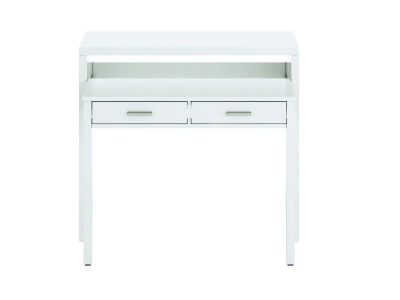 Bureau console extensible avec deux tiroirs couleur blanche artik.