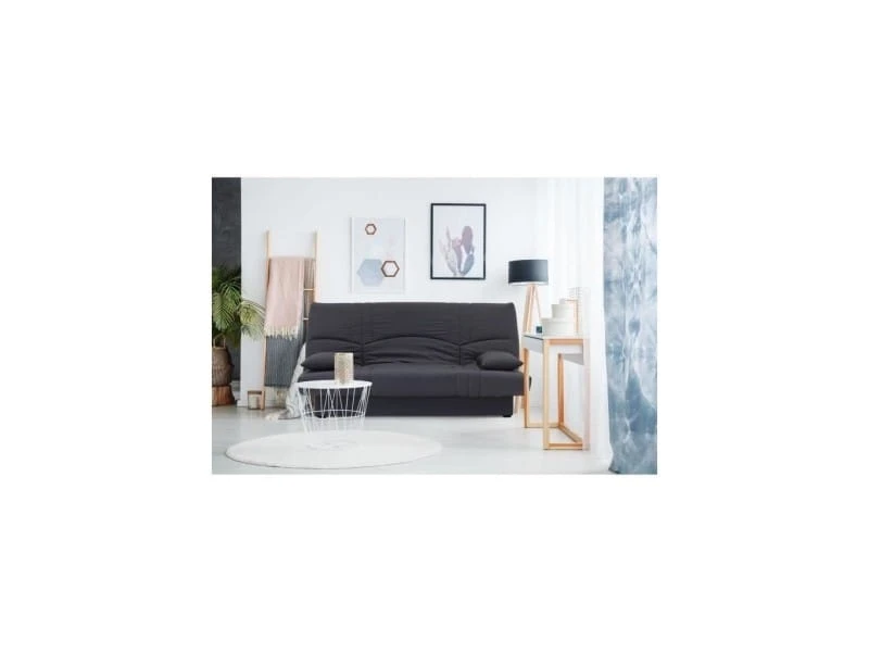 DREAM Banquette clic clac 3 places – Style et design contemporain – Métal – Tissu 100 % coton – Ferme – Mousse polyuréthane 25kg/m3 – Coffre de rangement – 2 articulations avec 3 positions et de 2 cadres de 2×9 lattes – 2 coussins – Fabrication européenne – Banquette L190 x P92 x H96 cm – Assise L190 x P53 x H46 cm.